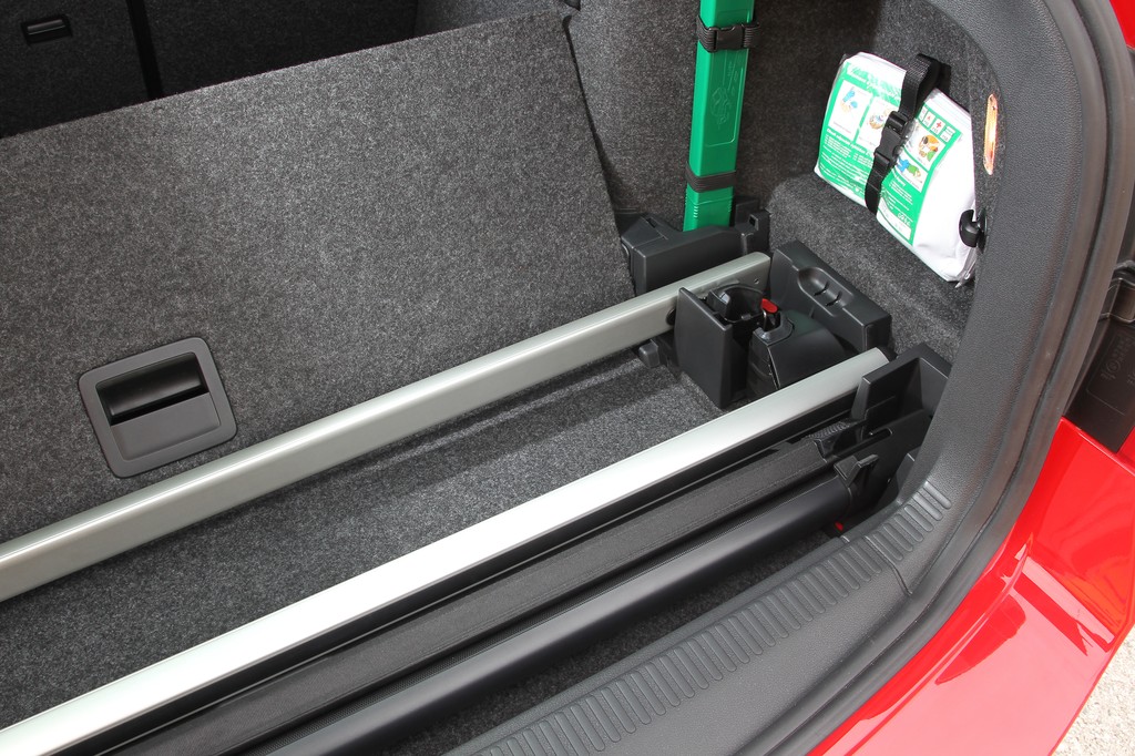 Un tapis de coffre réversible fait pour la première fois son apparition dans l’Octavia Combi. Dans des conditions d’utilisation normales, le revêtement en moquette de qualité est synonyme de confort et d’une esthétique plaisante. Lors du transport de chaussures de marche sales, de plantes en pot ou de bottes de ski mouillées, par exemple, le tapis de sol est tout simplement retourné, sa face imperméable à l’eau et à la saleté vers le haut. Le système de fixation du chargement est également inédit. Il permet, par exemple, d’arrimer en toute sécurité des cartons et des caisses.