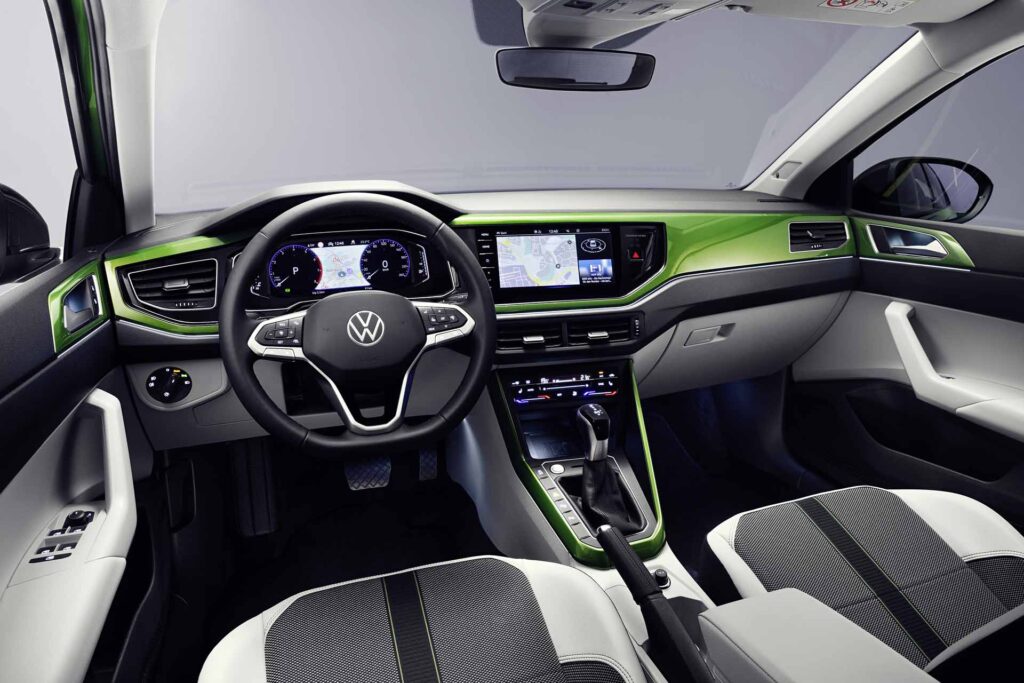 À l’intérieur, le Taigo se démarque par un volant multifonction au design élaboré et par des éléments de commande modernes de série. Les systèmes d’infodivertissement sont basés sur la troisième génération de la MIB3, avec notamment une unité de commande en ligne (eSIM) et « App Connect Wireless » (selon la configuration). Des fonctions telles que l’accès aux services de streaming, la commande vocale naturelle et la personnalisation basée sur le cloud et sur « Volkswagen ID » permettent l’utilisation des services MIB3.1 les plus récents, selon la configuration.